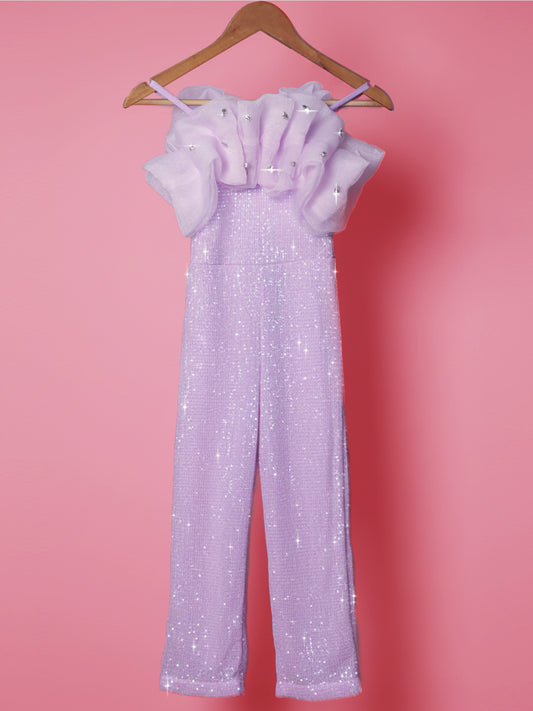 Girls Partywear Sequin Jumpsuit with Stone Embellishments - Lilac